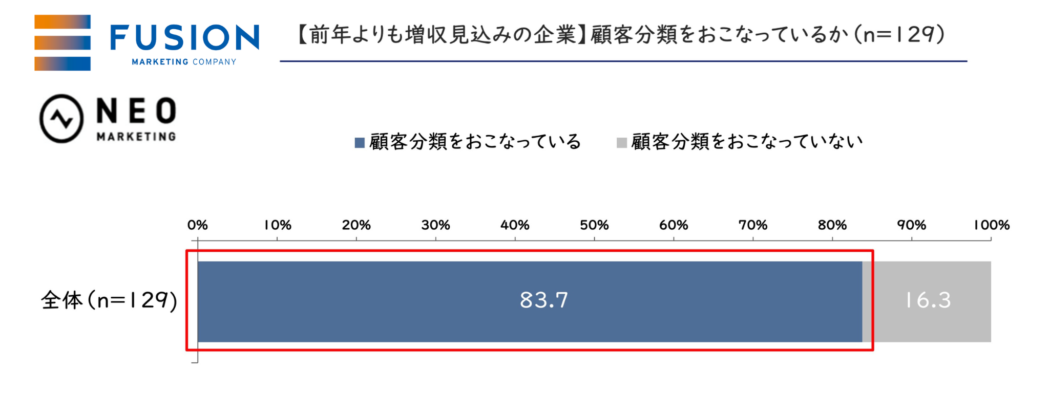 増収見込みの企業は、8割が顧客分類をおこなっている。