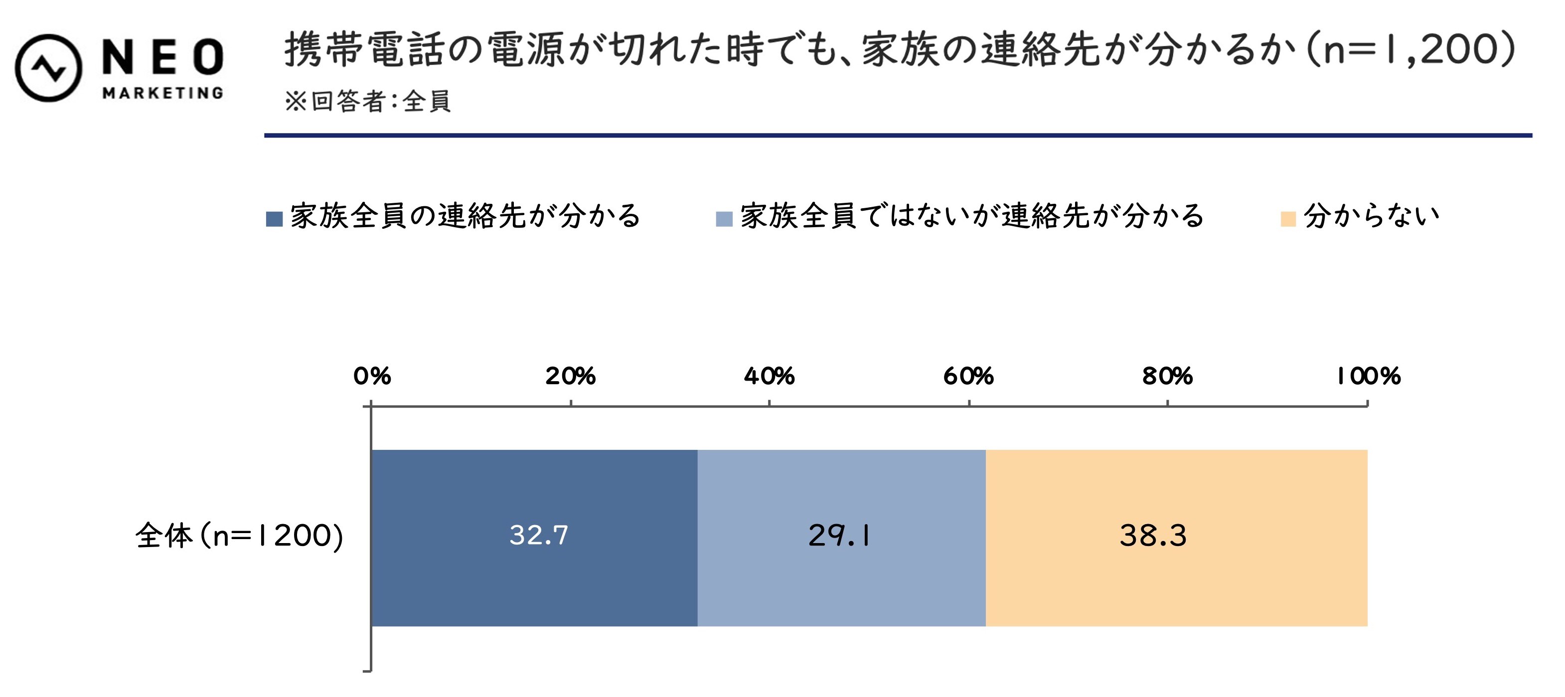 携帯電話の電源が切れた時でも、家族の連絡先が分かるか(n=1,200)