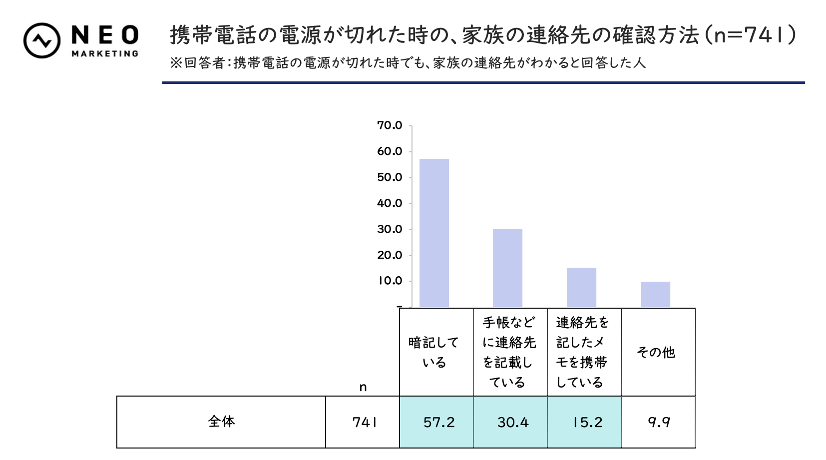 多くの人が携帯電話に連絡先を保存するのみで、もしものために暗記もしくはどこかに控えることはしていないという実態が分かりました。