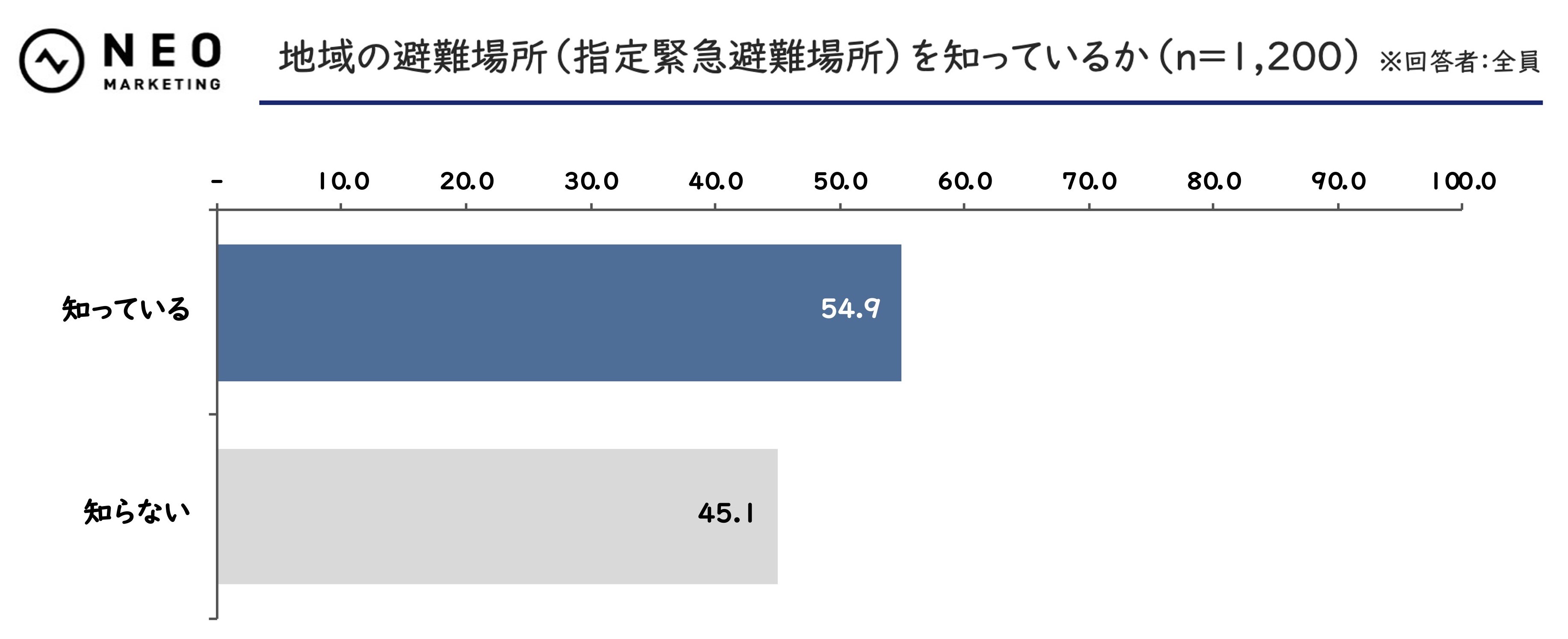 地域の避難場所(指定緊急避難場所)を知っているか(n=1,200)
