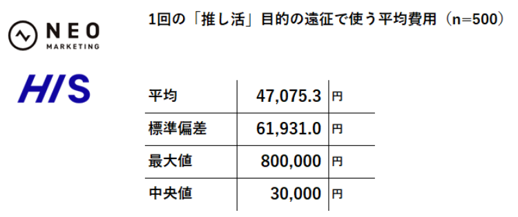 1回の「推し活」目的の遠征で使う平均費用約4.7万円、最大は80万円!