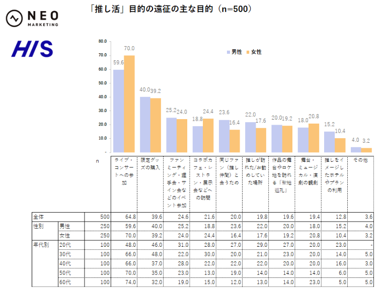推し活遠征の主目的は「ライブ・コンサートへの参加」が全体の64.8%で最多