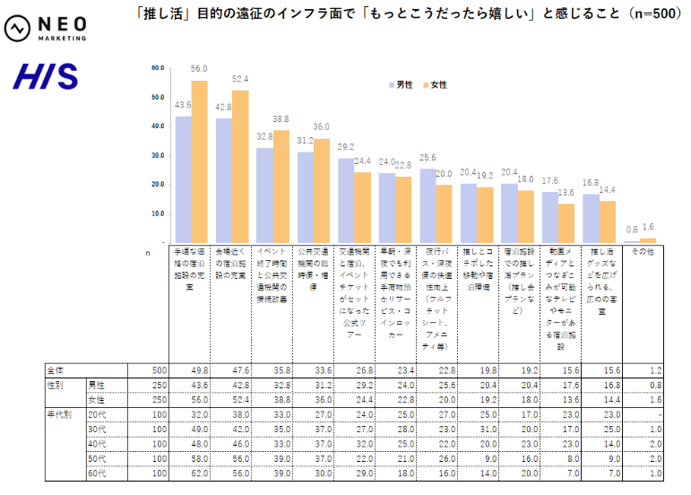移動・宿泊をいかにラクにするかがカギ。男性は“道中も推しを感じられる”仕掛けに前向き。