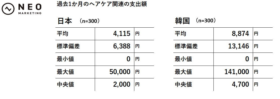 過去1か月のヘアケア支出額は韓国が圧倒的。