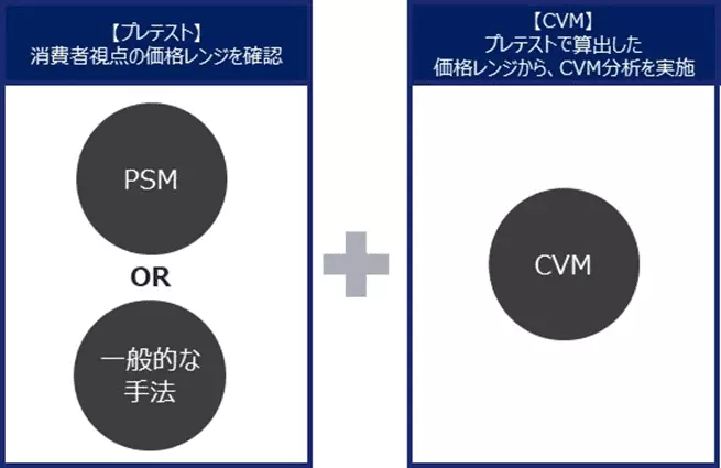 ※CVMは各価格を段階的に聴取するため、価格幅をより明確にできるPSM分析の方がプレテスト