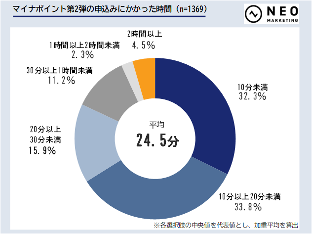 平均24.5分でマイナポイント申込み完了(マイナンバーカード自体の申請・受取にかかった時間は含まない)