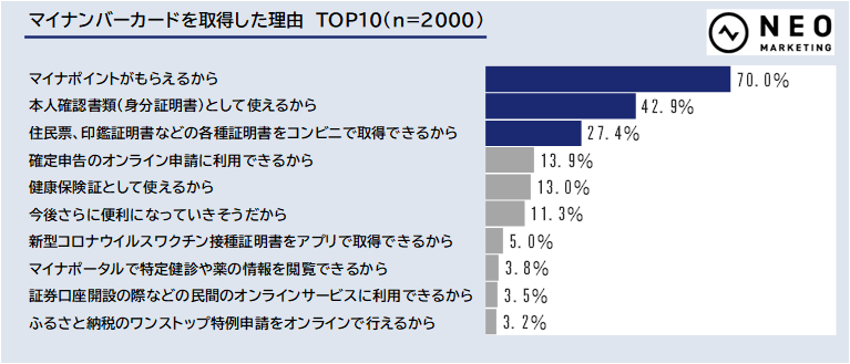 マイナンバーカードを取得した理由は「マイナポイントがもらえるから」が最多