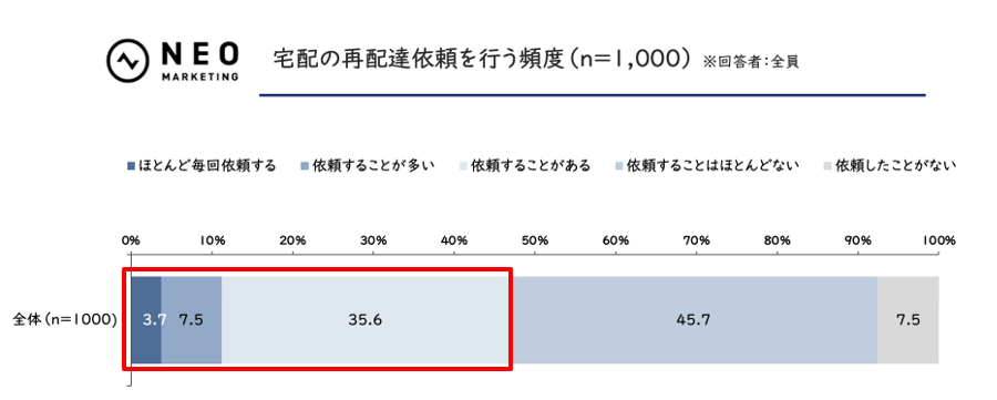 宅配の再配達依頼を、どのくらいの頻度で行っているかをお聞きしました。