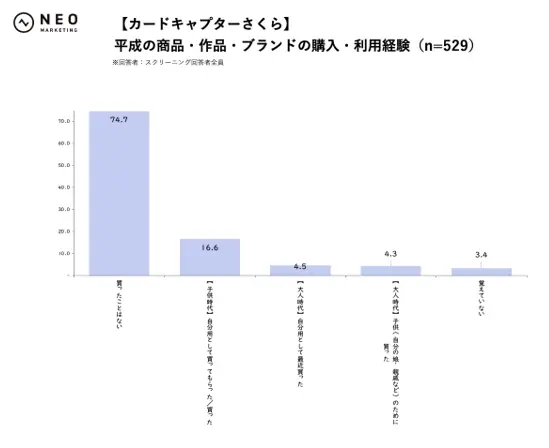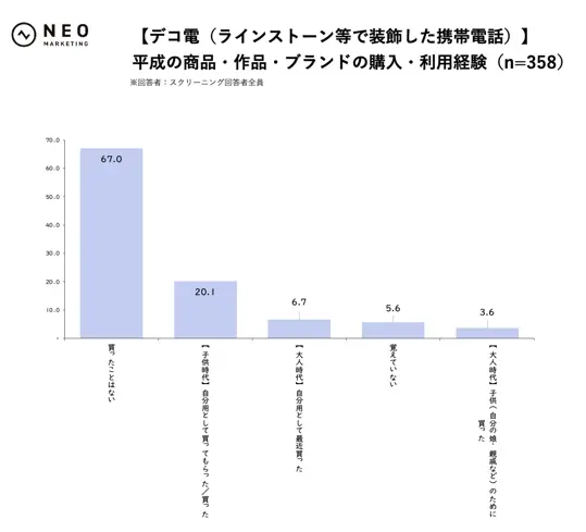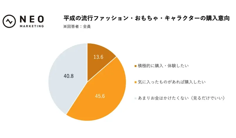 平成リバイバルは一部の熱量の高い層だけの動きではなく、広く“買っても良い”“体験してみたい”対象として受け入れられていることがわかります。特に「積極的に購入・体験したい」が10%を超えている点からは、受け身で眺めるだけではなく、自発的にお金や時間を使いたい層が既に一定規模で存在していると見て良さそうです。