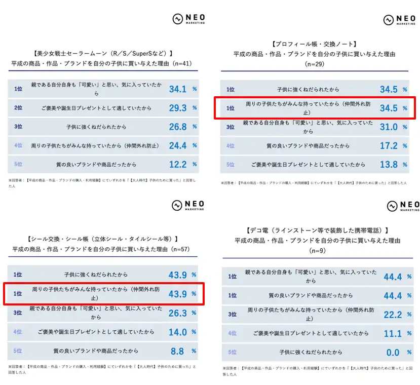 子供に平成コンテンツを買い与える理由:「親自身が可愛いと感じている」ことが最大の購買動機