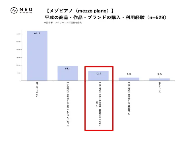 平成コンテンツの購入・利用経験:「日常使い」アイテムほど子供時代の経験率が高い