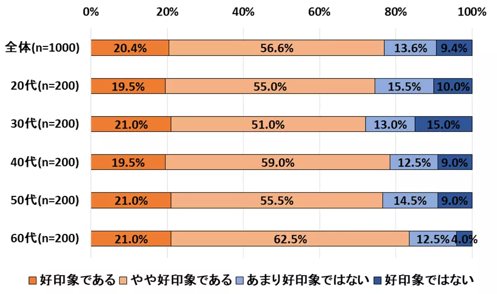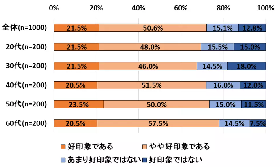 その傾向は年代別に見ても変わらず、どの年代においても7割前後の方は好印象を抱くという結果であった。