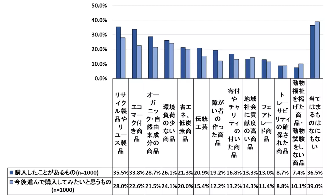 エシカル商品の製造販売や企業のSDGs活動への取り組みについて、