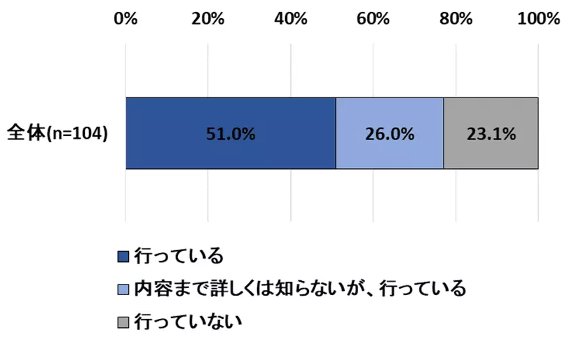お勤め先、またはお勤め先の親会社が上場しているとお答えの方に、お勤め先、またはお勤め先の親会社はSDGs活動を行っているかお聞きしました。「行っている」「内容まで詳しくは知らないが、行っている」と回答した方は77.0%に上りました。上場企業におけるSDGs活動の実施率は高いといえるでしょう。